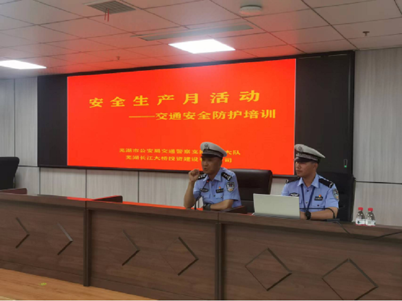 今年6月是全國第21個(gè)安全生產(chǎn)月,為進(jìn)一步增強(qiáng)員工安全生產(chǎn)意識(shí),提高各崗位人員應(yīng)對突發(fā)事件的應(yīng)急處置能力,防范安全事故的發(fā)生,近日,蕪湖長江大橋投資建設(shè)有限公司特邀蕪湖市交警支隊(duì)大橋大隊(duì)開展交通安全知識(shí)教育培訓(xùn)活動(dòng)。