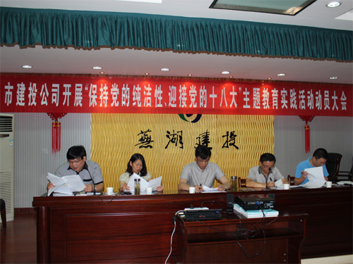 根據(jù)市委統(tǒng)一部署,公司于7月5日召開“保持黨的純潔性、迎接黨的十八大”主題教育實踐活動動員大會,公司全體黨員參加了會議。會議由公司副總經(jīng)理朱毅主持,公司紀檢組長汪學德向全體黨員傳達了市委相關文件精神,公司副總經(jīng)理方曉向全體黨員通報了公司主題教育實踐活動實施方案,公司副總經(jīng)理湯高繼帶領全體黨員學習了胡錦濤總書記在慶祝建黨九十周年上的講話、在十七屆中央紀委第七次全會上的講話及張寶順在省第九次黨代會上的工作報告等資料。全體黨員觀看了專題電教片《永葆黨的純潔性》等。